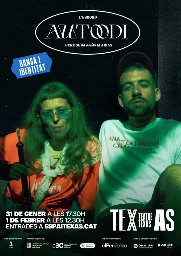 Pere y Sònia, formados en música y danza y arraigados a la tradición popular, se reencuentran para compartir una realidad común: la precariedad y las contradicciones de vivir profesionalmente de la cultura tradicional. AUTOODI transforma este conflicto en un diálogo liberador, que celebra las raíces y al mismo tiempo cuestiona cómo las instrumentalizamos y despreciamos. Una pieza que abre preguntas sobre identidad y pertenencia en una sociedad globalizada.